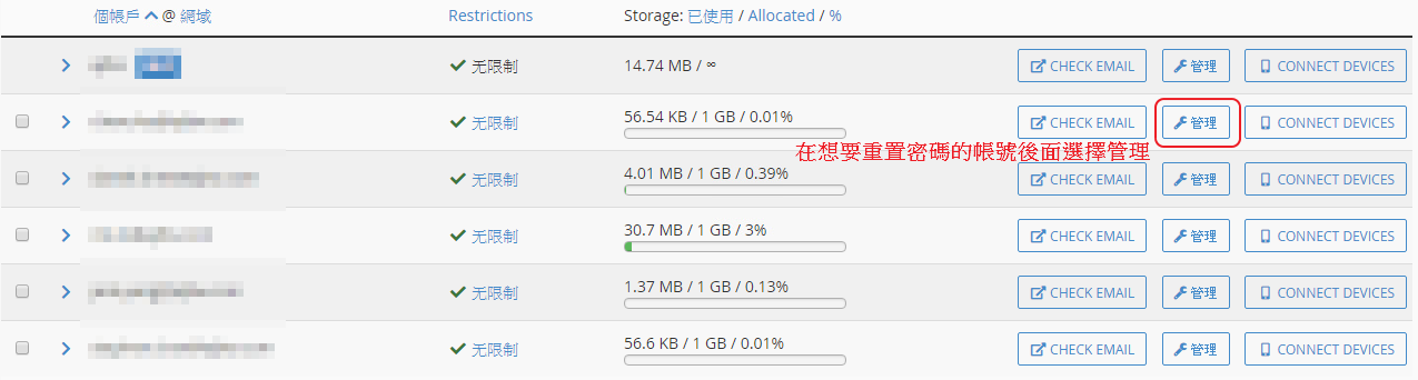 1.先登入 cPanel常見的登入連結位置為https://你的網址:2083或是https://你的網址/cpanel 2.點開電子郵件帳戶 3.點擊你要進入的信箱帳號後面的...