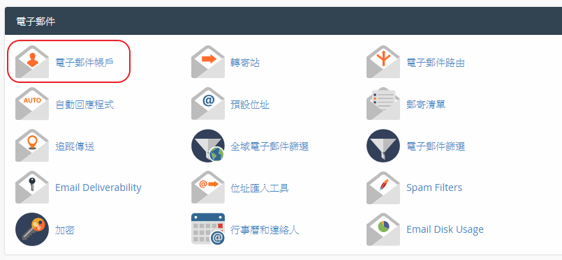 1.先登入 cPanel常見的登入連結位置為https://你的網址:2083或是https://你的網址/cpanel 2.點開電子郵件帳戶 3.點擊你要進入的信箱帳號後面的...