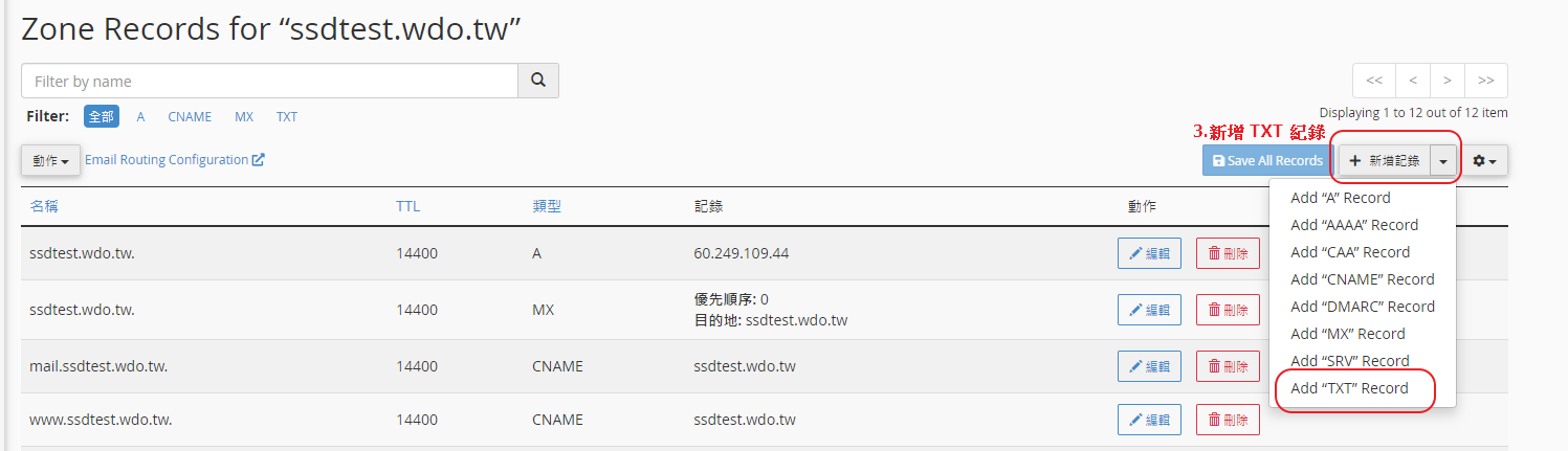 注意:在不確定的情況下請不要修改其他的 DNS 紀錄