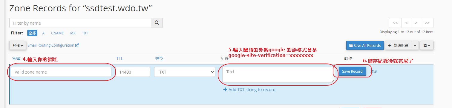 STEP.4 選擇新增 => 新增 TXT 紀錄