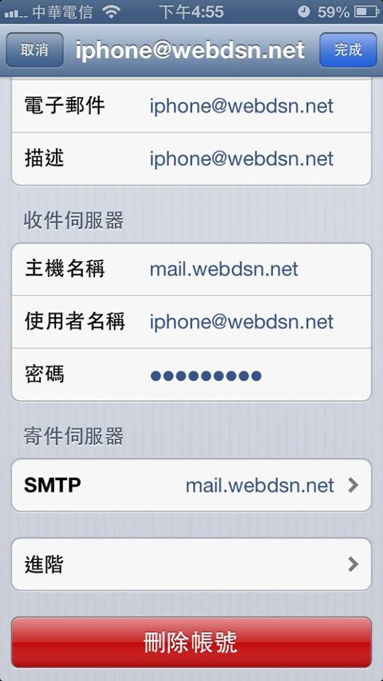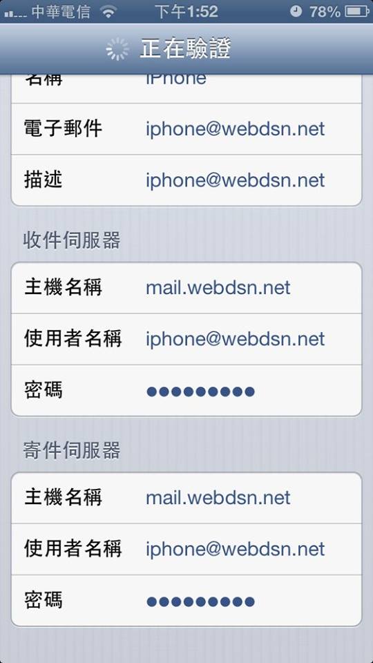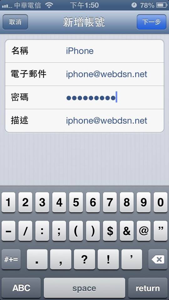Step5: 新增帳號,輸入您email”帳號@網域”及密碼