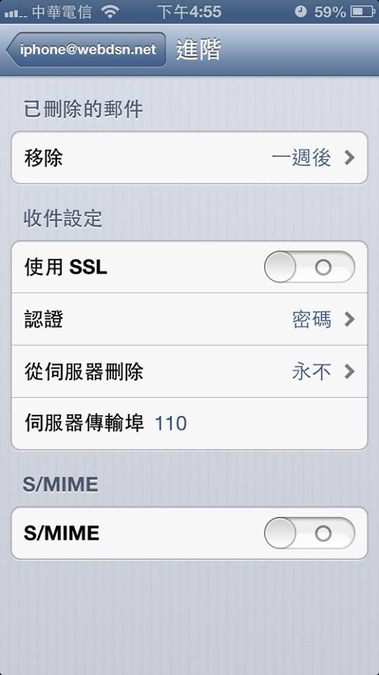 Step11:關閉SSL,認證改”密碼”,並將傳輸阜改為110,並回上頁