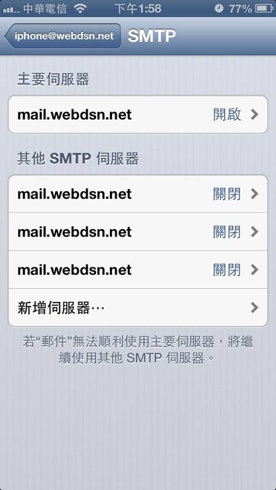 Step13:進入SMTP設定功能後選擇主要伺服器→”mail.網域”