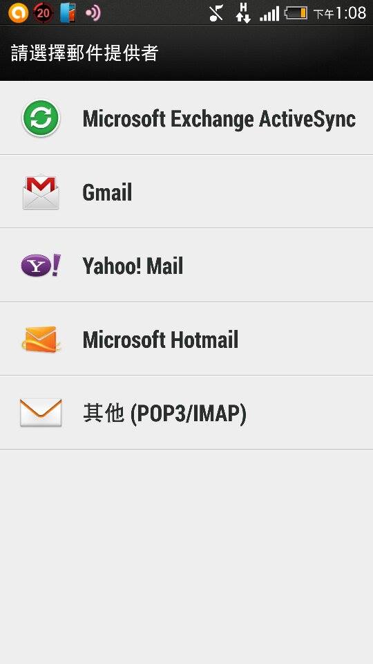 Step1:選擇郵件提供者,選取”其他(POP3/IMAP)”