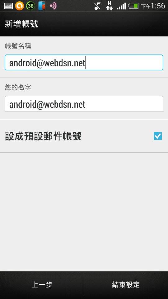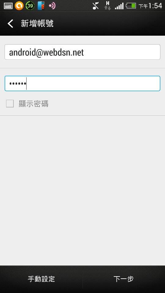 Step2:新增帳號,輸入您email”帳號@網域”及密碼