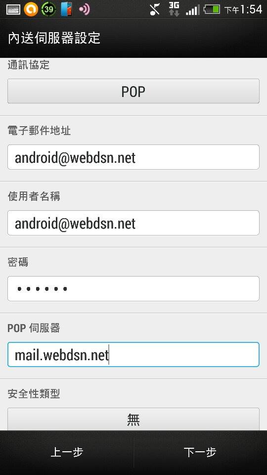 Step3:設定內送伺服器,POP伺服器輸入”mail.網域”,使用預設port 110