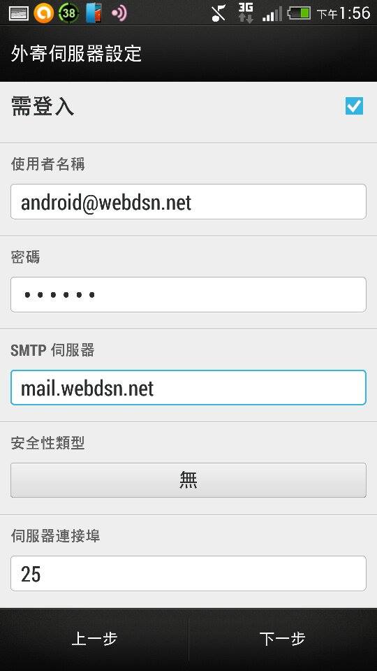 Step4:設定外寄伺服器,SMTP伺服器輸入”mail.您的網域”,使用預設port 25