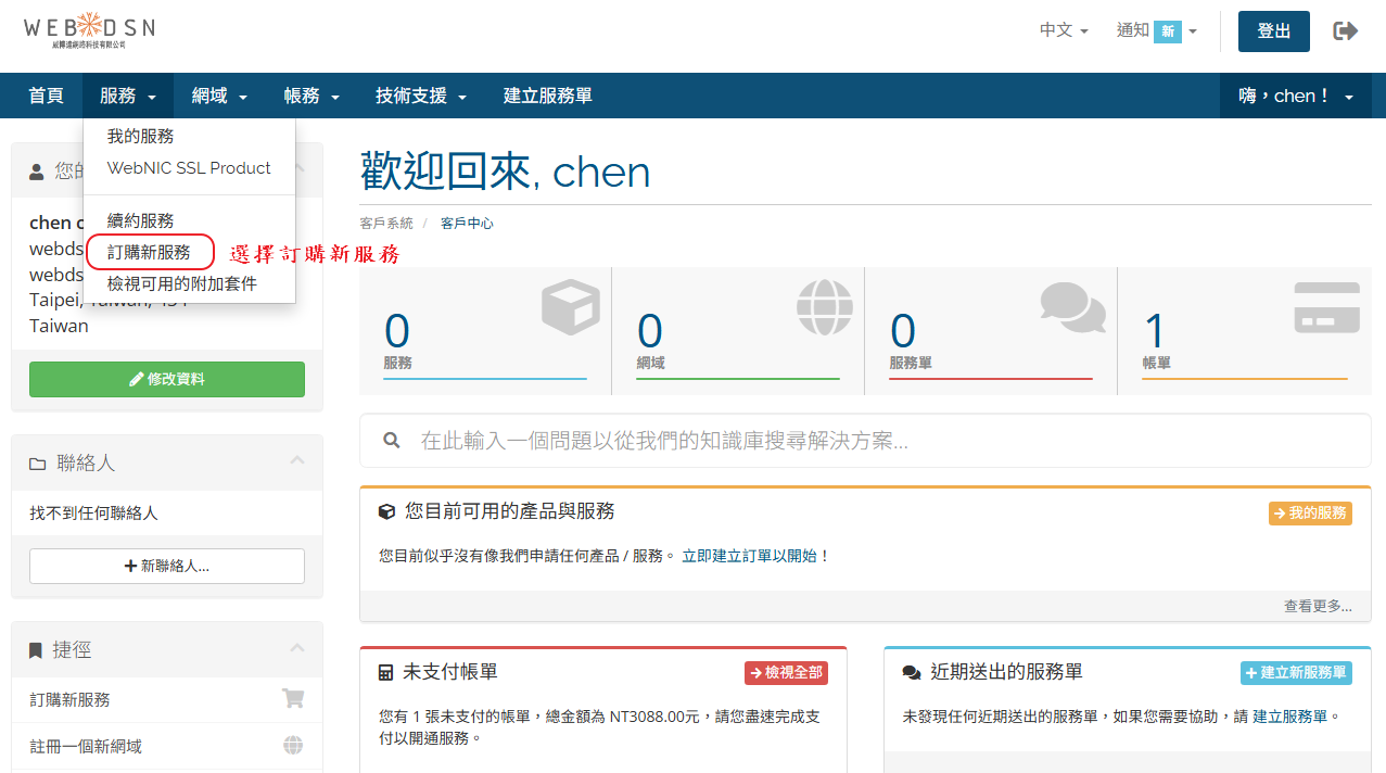 STEP.1 選擇訂購新服務