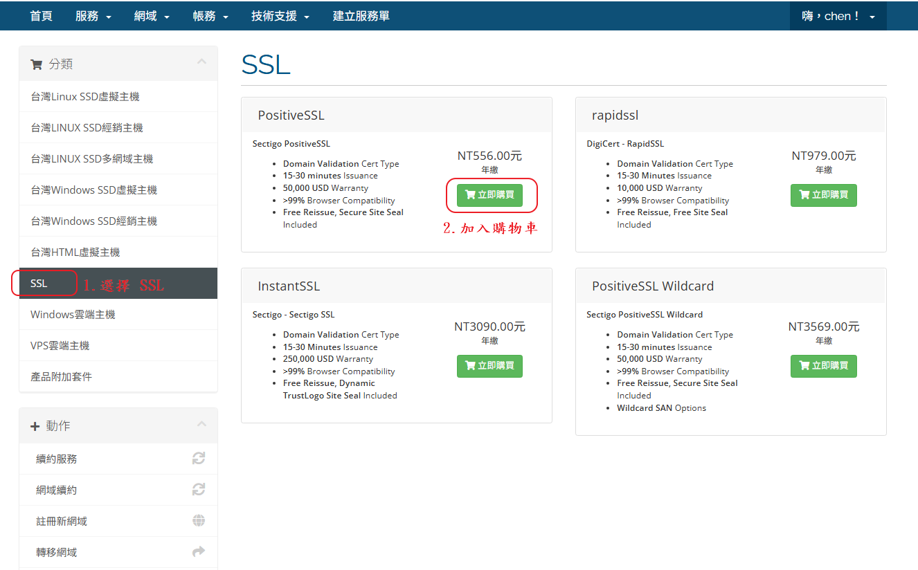 STEP.2 將你要購買的 SSL 加入購物車