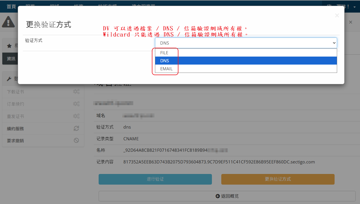 其中 DNS 與檔案驗證不是即時完成,需要等憑證商的主機確認後才會核發憑證。